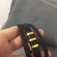 Stylish Genuine Leather Bracelets For Men Men Accessories Color : Silver|Gold/Black|Black /Silver|Gold/Silver