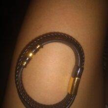 Our men’s bracelet has two leather strands on each side, creating a completely unique look. This versatile classic bracelet can not only be worn with your jeans and T-shirt, but it can also complement your look and style whether dressed for surfing on the beach or in your tux for the red carpet!